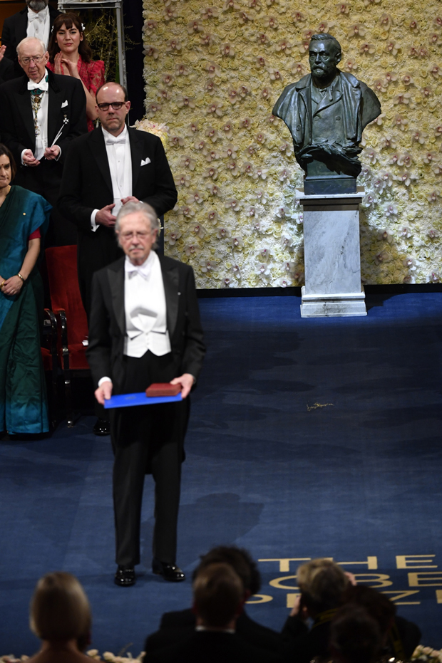 U TRENUTKU kada je Peter držao u rukama Nobelovu nagradu i poklonio se tri puta zaredom: švedskom kralju, članovima Akademije i nama koji smo aplaudirali, meni je izgledao kao da mu je i dalje najvažnija ona reč zbog koje je pisac jednog popodneva, izlazeći iz kuće, umesto da pređe kućni prag, požurio nazad za pisaći sto, i "zamenio jednu reč drugom". Sva tri puta naginjući se napred iz kukova a ne iz vrata, kako to čine profesionalci, nazirao se trag one nevinosti koju je spomenuo "Novostima" posle vesti da je postao Nobelov laureat. Da je unapred savladao tehniku poklona, teško da bi tu, pred nama, stajao.