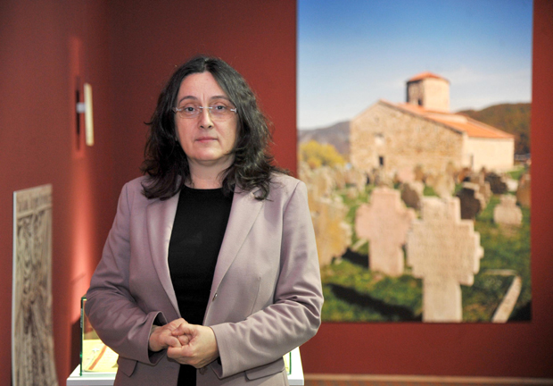 - Urađene su i nove kulise. Zidovi su okrečeni u bordo, belo i boju starog zlata. Napravljen je i novi mobilijar. Do pre tri godine koristili smo vitrine Muzeja istorije Jugoslavije. Ova izložba je značajna jer nudi istorijsko sagledavanje dinastije Nemanjić kroz portrete vladara, njihov život i sve ono što ih je okruživalo. Postavku su radili arheolozi, što nudi jedno drugačije sagledavanje, jer se priča izražava kroz sačuvane predmete. Nažalost, ova zemlja je harana, pa je ostalo tog materijala. Ipak, najviše ih je na postavci iz našeg fonda. To su dijademe, nakit, minđuše...