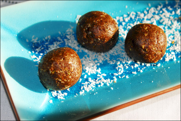 Sastojci za 20 komada: 180 g urmi bez koštica, 150 g oljuštenih neslanih pistaća, sok od limuna, kašičica kardamoma u prahu i 50 g kokosa za ukrašavanje.