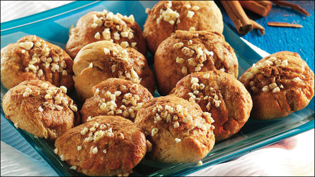 Potrebno je: 325 g med, sok i rendana kora od pomorandže, 150 ml maslinovog ulja, 60 ml metakse, 400 g brašna, 3 kašičice praška za pecivo, 1/2 kašičice sode bikarbone, kašičica i po cimeta, 120 g šećera i 100 g seckanih badema.