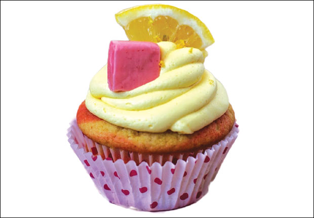 Mikserom umutite puter, med, sok i koricu od limuna, jaje, žumanca i ekstrakt vanile. Postepeno umešajte brašno, prašak za pecivo, sodu bikarbonu, so i žutu boju. Odvojte dve, tri kašike žutog testa i umešajte ružičastu boju. U podmazan kalup za mafine stavite papirne korpice, sipajte prvo žuto, pa ružičasto testo i pecite u rerni na 160 stepeni 20 minuta. Sve sastojke za preliv izmiksajte, sipajte u kesu sa otvorom, napravite spirale na mafinima, ukrasite limunom i poslužite.