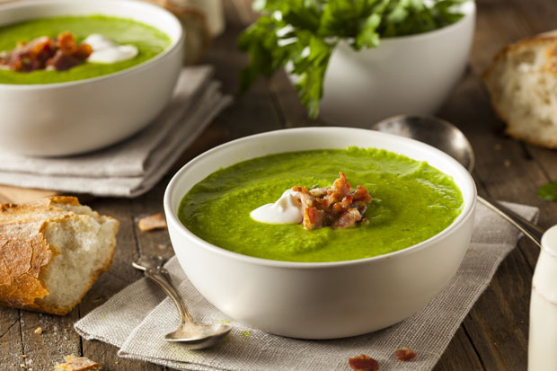 Za 4 osobe potrebno je: 750 g svežeg spanaća, 1 veliki krompir, 100 g dimljene slanine, 2 kriške seljačkog hleba, litar pileće supe, 2 kašike maslinovog ulja, 4 prstohvata rendanog muskatnog oraščića, so i biber.