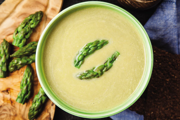 Potrebno je: 200 g špargle * 3/4 l vode * kašika putera * 1/2 kašike brašna * 100 ml kisele pavlake * malo mlevenog ili narendanog muskatnog oraščića * so l biber.