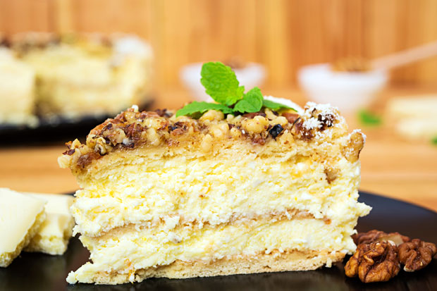 Penasto umutite žumanca sa 75 g šećera u prahu. Dodajte vrelu vodu i mutite dok se masa ne zgusne. Belanca umutite u čvrst sneg, dodajte preostali šećer i vanilin šećer. U umućena žumanca lagano umutite brašno sa mlevenim orasima. Postepeno dodajte sneg od belanaca i pažljivo promešajte testo. Pecite 20 minuta u plehu obloženom papirom za pečenje na 180 C. Ispečenu koru odmah izručite na krpu posutu šećerom.