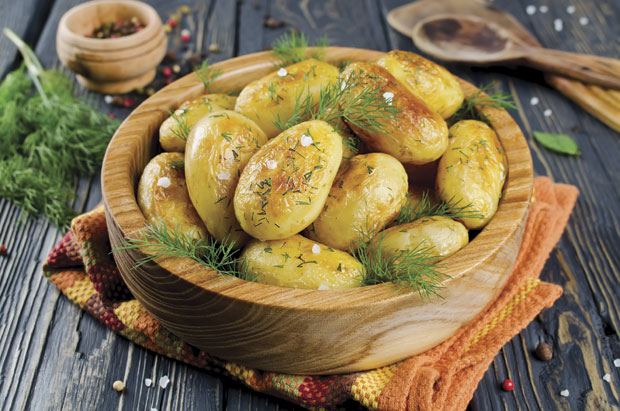Potrebno je:1 kg mladih većih krompira, 2 vezice mladog crnog luka, 2 dl supe od povrća, 150 g sira isečenog na kockice (nekog žutog po vašoj želji), kašika putera, ruzmarin, so po želji (pažljivo, jer sir i supa od povrća su slani)