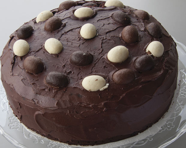 Dobijenu smesu izlijte u podmazan i pobrašnjen kalup za torte. Pecite u rerni zagrejanoj na 150 stepeni celzijusa oko 75 minuta. Tortu izvadite iz kalupa i premažite džemom. Ohlađenu tortu prelijte čokoladnom glazurom.