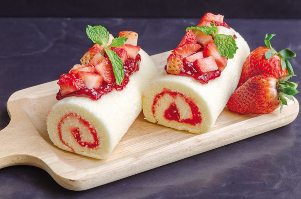 Od ohlađenog krema izdvojite tri kašike za mazanje rolata, a preostalim kremom namažite razmotani biskvit. Po celoj površini rasporedite isečene jagode i savijte rolat. Kolač ostavite u frižideru najmanje jedan sat da se dobro ohladi. Na kraju, rolat spolja premažite preostalom kremom i ukrasite seckanim pistaćima i jagodama.