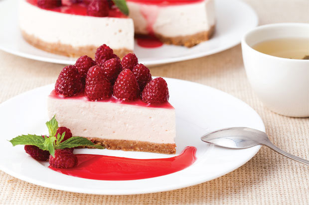 Na laganoj vatri otopite maslac i med, dodajte vanilin šećer, cimet, sok od pomorandže i koru. Ovom mešavinom prelijte keks, sve dobro promešajte i smesu ravnomerno rasporedite na uljem podmazan kalup za torte veličine 26 cm. Pripremljenu podlogu stavite u zamrzivač na sat vremena. Umutite svež sir i rikotu do penaste strukture. Pripremljenoj smesi dodajte umućenu slatku pavlaku, med, usitnjene maline i želatin (pripremite ga tako što ćete ga preliti hladnom vodom i ostaviti da stoji desetak minuta. Potom ga lagano zagrejte neprestano mešajući, dok se ne otopi). Kad se kolač ohladi, ukrasite ga malinama.