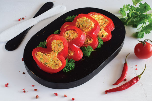 Operite paprike i očistite ih od semenki. U veću posudu pomešajte sve tri vrste sira, dodajte jaja, sitno iseckan beli luk, malo soli i bibera, kiselu pavlaku, bosiljak i origano i dobro promešajte. Napunite paprike ovom smesom i poređajte ih u pekač ili vatrostalnu posudu. Prelijte ih sa nekoliko kašika ulja i pecite u prethodno zagrejanoj rerni na 175 stepeni oko sat vremena.