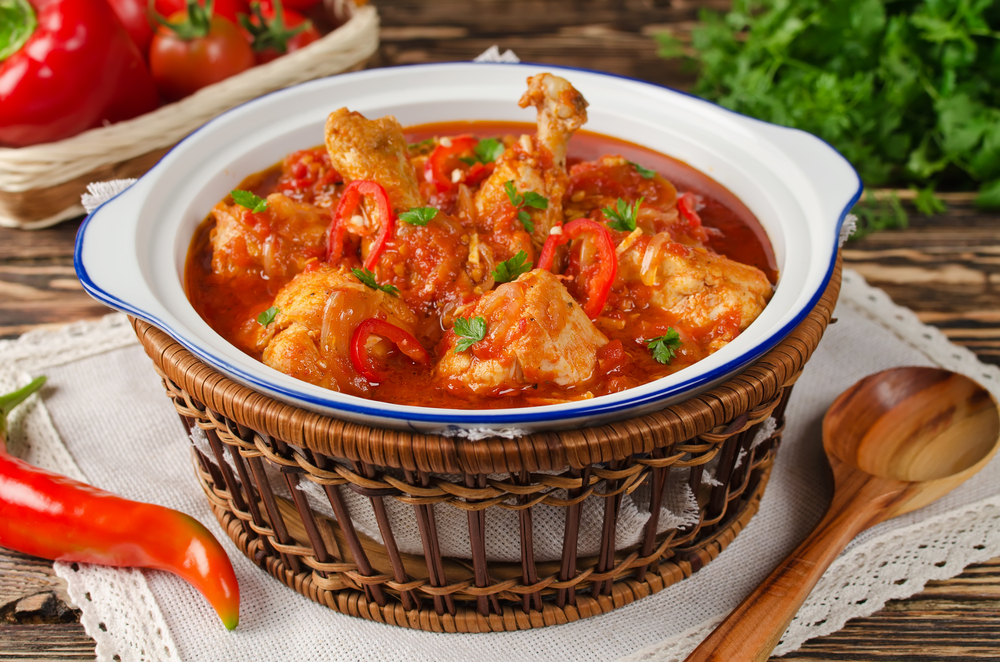 Na malo ulja prodinstajte crni luk iseckan na kockice. Kada postane staklast dodajte iseckan beli luk i piletinu, takođe iseckanu na kockice. Potom sipajte kašičicu aleve paprike, vodu i paradajz pire, pa ostavite da se kuva na srednjoj temperaturi. Za to vreme iseckajte papriku, šargarepu i krompir na kocke, pa dodajte u paprikaš koji se kuva. Sipajte biber, bosiljak, kurkumu i ruzmarin pa ostavite da se kuva na tihoj vatri tri sata uz povremeno lagano mešanje. Pileći paprikaš služite topao uz sezonsku salatu.