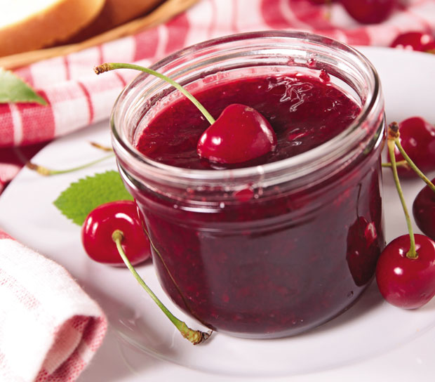 Trešnje operite i očistite od koštica. Šećer prokuvajte sa vodom da dobijete gust sirup. U sirup dodajte trešnje i limun isečen na kolutove. Kuvajte dok sirup ne bude toliko gust da sa kašike kaplje, a ne curi. Pokrijte mokrom krpom i ostavite preko noći, a onda sipajte u čiste, suve tegle. Pazite da sirup bude fino ukuvan, odnosno gust, kako bi se trešnje manje kuvale.