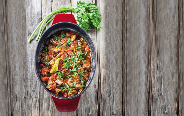 Sitno iseckajte crni luk i dinstajte dok ne dobije staklast izgled. Šargarepu iseckajte na kolutove, junetinu na komade, pa pomešajte sa krupnije isečenom boranijom i stavite u dinstan luk. Sve zajedno promešajte, sipajte vodu da ogrezne i kuvajte na umerenoj temperaturi oko 45 minuta. Na kraju dodajte biber, so i začine - majčinu dušicu, mirođiju, peršun, vrlo malo đumbira, malo paradajz soka. U to sipajte zapršku napravljenu od aleve paprike pomešane sa malo mlake vode i brašna.