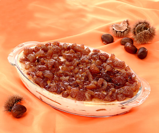 Maskarpone, šećer, vanilin šećer i kesten pire umutite mikserom da se svi sastojci lepo sjedine u glatku kremu. Potom u masu dodajte prethodno umućenu slatku pavlaku, pa sve zajedno još jednom kratko promešajte. Piškote umačite u vruću kafu pomešanu sa rumom, pa slažite po mogućstvu u providnu činiju nalik plehu. Premažite trećinom krema, ponovite postupak sa piškotama i završite sa kremom. Po želji pospite kakaom, šećerom u prahu pomešanim sa cimetom, seckanim lešnicima... Pre služenja ostavite nekoliko sati u frižideru da se stisne ili napravite dan ranije.