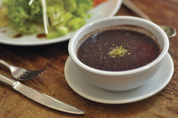 Sitno iseckan crveni luk prodinstajte na maslinovom ulju, pa dodajte iseckanu ljutu papričicu. Kratko propržite i dodajte crveni pasulj i paradajz pelat. Posolite, pobiberite i prelijte vodom. Kuvajte čorbu oko pola sata. Na kraju ubacite iseckan peršun i čorbu servirajte toplu.