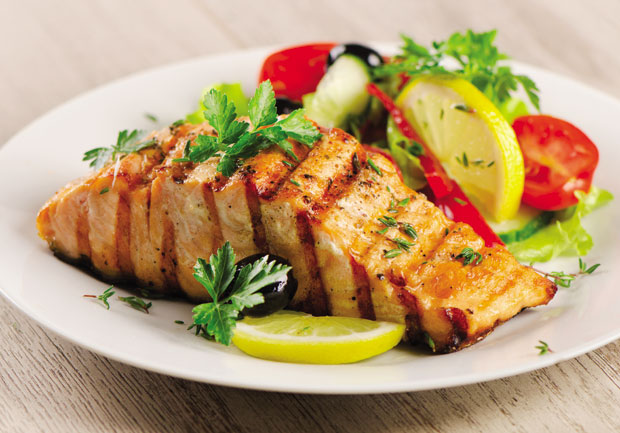 Ugrejte rernu na 220 stepeni. Svaki komad ribe posušite papirnim ubrusom, posolite, pobiberite i premažite maslinovim uljem. U tiganju, na vrelom ulju pržite ribu pet minuta, pa prebacite u podmašćen pleh i pecite još desetak minuta. Dok se riba peče, na maslinovom ulju pržite sitno iseckanu crvenu papriku, tikvicu i brokoli koje ste prethodno posolili. Kad povrće omekša, izvadite iz tiganja. Ribu poslužite preko povrća, a možete da dodate i malo zelene salate za dekoraciju. Pre služenja ribu poprskajte sokom od limuna.