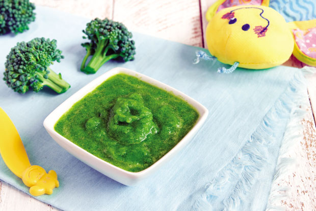 Cvetove brokolija operite i skuvajte zajedno sa graškom u slanoj vodi, pa procedite. Ispasirajre povrće štapnim mikserom, dodajte puter, kiselu pavlaku, parmezan, začine i sve zajedno ponovo umutite kako biste dobili ujedančenu kremastu smesu. Poslužite dok je toplo uz meso po izboru.
