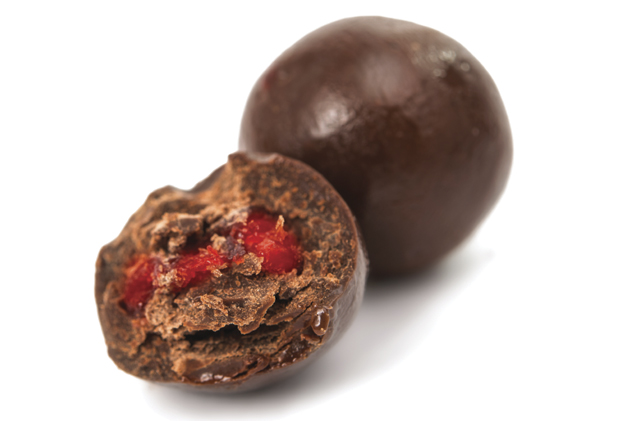 Odmrznite kesten pire i od njega pravite rukom bombice. U svaku stavite po višnju i ređajte ih u papirne korpice. Istopite čokoladu sa kašikom vode i na kraju dodajte ulje. Kada se smesa prohladi, njome prelijte svaku bombicu i ostavite da odstoji u frižideru, pre služenja, oko pola sata.