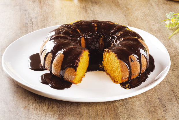 Umutite penasto jaja sa šećerom, dodajte sok, ulje, brašno pomešano sa praškom za pecivo, šargarepu i džem. Sve sjedinite i sipajte u kalup za kuglof, pa stavite da se peče u zagrejanoj rerni na 180 stepeni. Pecite oko 40 minuta. Napravite glazuru od topljenog margarina i čokolade, pa prelijte odmah na topli kolač.