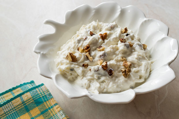 Celer i jabuke krupno narendajte, pa pomešajte sa iseckanim orasima (ostavite malo za posipanje). Dodajte sve začine, sok od jednog limuna, orahe, zatim sve dobro sjedinite. Na kraju sve pomešajte sa majonezom i ukrasite orasima. Jedite ohlađenu.