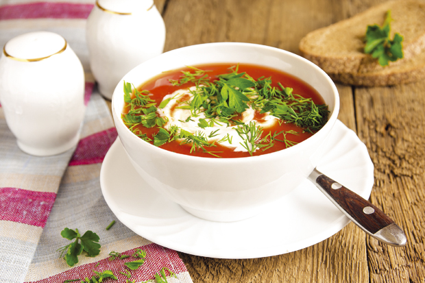 Opran i na kriške isečen paradajz poređajte na pek-papir, pospite ga iseckanim crvenim i belim lukom, ruzmarinom i pospite uljem. Posolite, pobiberite i pecite otprilike pola sata na 200 stepeni. Za to vreme prokuvajte kocku u vodi, pa u povrtnu supu ubacite pečen paradajz. Kuvajte 20 minuta, povremeno mešajući. Nakon toga sve usitnite štapnim mikserom i dodajte komadiće mocarele.