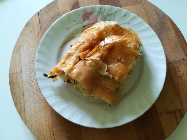 Jaja, sir, blitvu, kiselu vodu i so umutite. Kad sve sjedinite, ređajte u tepsiju tako što sipate ulje, pa stavite dve kore za pitu, a potom smesu. Zatim stavite jednu koru i poprskajte je uljem i vodom. Ponovo stavite red smese i tako dok je ne utrošite. Na kraju opet složite dve kore. Pitu pecite u rerni na 200 stepeni, otprilike 45 minuta.