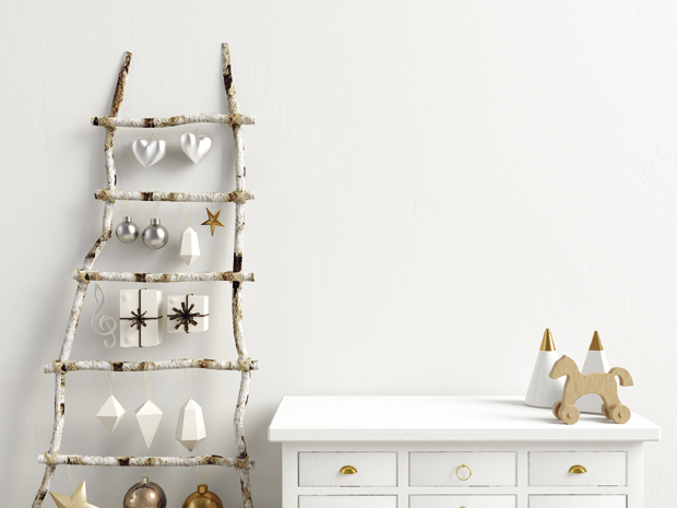 Ako ne volite šarenilo, odlučite se za bele stilizovane, dekorativne merdevine od pravog drveta, na čije lestvice, baš kao i na jelku, možete da okačite bele i srebrne ukrase. Moderno izgledaju i velike ukrasne bele zvezde i pahuljice. Uz pomoć tankih, providnih niti različite dužine zakačite ih za plafon i - uživajte u magiji koju ste sami stvorili!