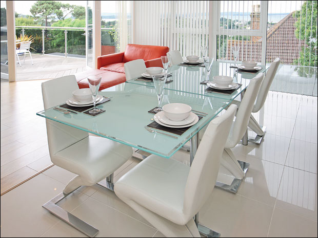 Njegova providnost daje osećaj prostranosti, izgleda moderno i sofisticirano i lako se čisti. Loše je što ima oštre ivice koje mogu da budu opasne i privlači prašinu.