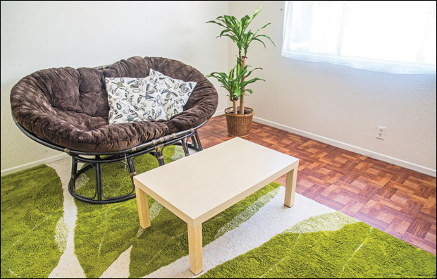 Spoj mnogobrojnih aktivnosti (druženje, zabava, odmor, slušanje muzike) potrebno je uspešno uskladiti i urediti prostor. Poželjno je da dnevni boravak ima dosta dnevne svetlosti, ako nema, potrebno je pojačati rasvetu. Upotrebiti prirodne materijale, puno boja, a prostor urediti proporcionalno njegovoj veličini - velike dnevne sobe podeliti u više manjih, grupisanjem nameštaja. Sedenje se postavlja tako da ne bude leđima okrenuto prema vratima ili prozoru. Sofe, fotelje, stočić je najbolje postaviti u obliku kruga, jer krug predstavlja simbol zajednice. Televizori i slični aparati kao i metalni predmeti ne bi trebalo da zauzimaju centralnu poziciju dnevne sobe. Prazne i tamne uglove dnevnog boravka potrebno je ispuniti nekim umetničkim predmetima, biljkama ili osvetliti lampama.