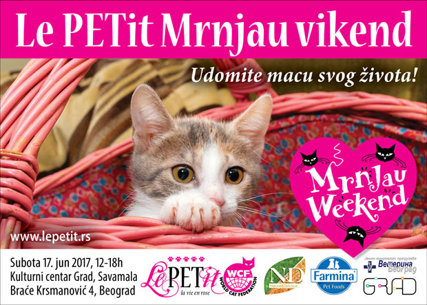 Društvo Le PETit po treći put priređuje priredbu posvećenu mačkama i mačkoljupcima - Mrnjau vikend! Organizatori nam poručuju: u subotu 17. juna 2017. svratite u Kulturni centar Grad na lekovitu dozu predenja, dođite da mazno mrnjaučemo svi u glas, da se zabavimo, smejemo i informišemo!