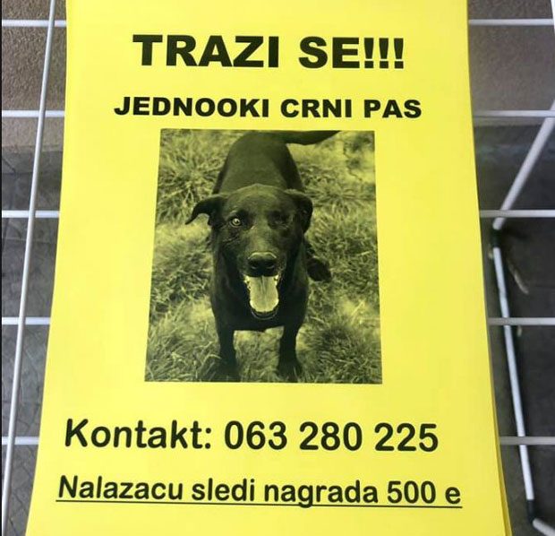Stanko je nestao 24. janara iz privremenog doma u Svetogorskoj ulici, na opštini Stari grad. Kako piše na Fejsbuku, gde ga oglašavaju svakoga dana, nepažnjom poštara kapija u dvorištu nije lepo zatvorena, pa je nesrećni pas izašao i izgubio se. Stanko je star osam godina, veličine manje ženke labradora. Možda izgleda kao običan crni pas srednje veličine, ali ga izdvaja to što nema jedno oko.