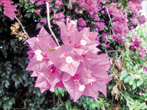 Sa bugenvilijom je situacija malo drugačija, jer je najbolje vreme za razmnožavanje proleće. Međutim, treba probati sa reznicom veličine od 10 do 20 centimetara. Donje listove treba otkinuti i do polovine staviti u zemlju. Bugenvilija se neće ožiliti u vodi, već je najbolje umočiti donji deo u hormon rasta i spustiti ga u pesak u rupicu koja je napravljena olovkom. Ukoliko se ne stavi u takvu rupicu - hormon će otpasti. Bugenvilija je nežnija od oleandra i teže će podneti dugo putovanje do kuće.