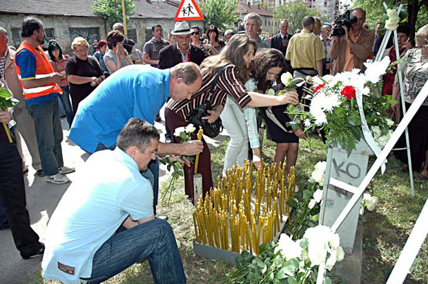 Sveće i cveće na mestu stradanja vojnika JNA u Tuzli