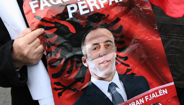 Ramuš Haradinaj je bivši vođa OVK. U Albaniji je 1996. godine završio obuku i učestvovao u stvaranju terorističkih baza u gradovima Kuks (Kukeš) na severu Albanije i Tropoja. Na Kosmet je ušao ilegalno, a trajno se vratio sredinom 1997. godine, kada je s braćom Dautom i Škeljzenom organizovao terorističke napade na policiju širom Metohije. U aprilu 1998. godine postao je jedan od regionalnih komandanata OVK. Na njegovu inicijativu u Glođanu je formirana specijalna jedinica „Crni orlovi“ u okviru OVK, kojoj se pripisuje odgovornost za mučenja i ubijanja više desetina srpskih civila, čija su tela nađena u Radonjićkom jezeru i po seoskim bunarima u opštini Dečani.