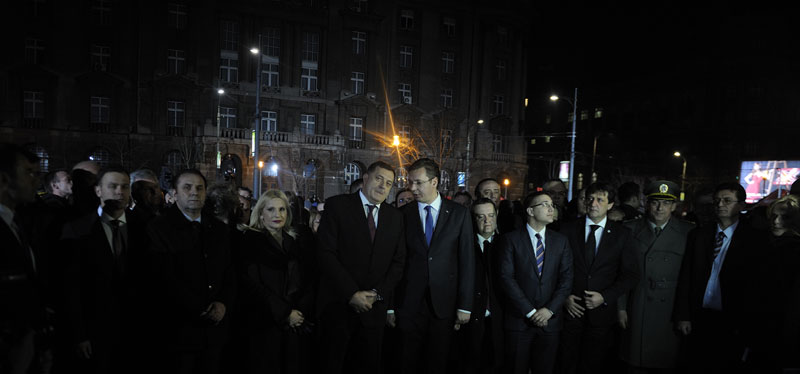 Centralna komemorativna ceremonija obeležavanja 16 godina od početka NATO bombardovanja počela je u 19.58 sati ispred zgrade bivšeg Generalštaba VS u Beogradu. Vučić: Srbija hoće ponosan i čistog obraza u EU