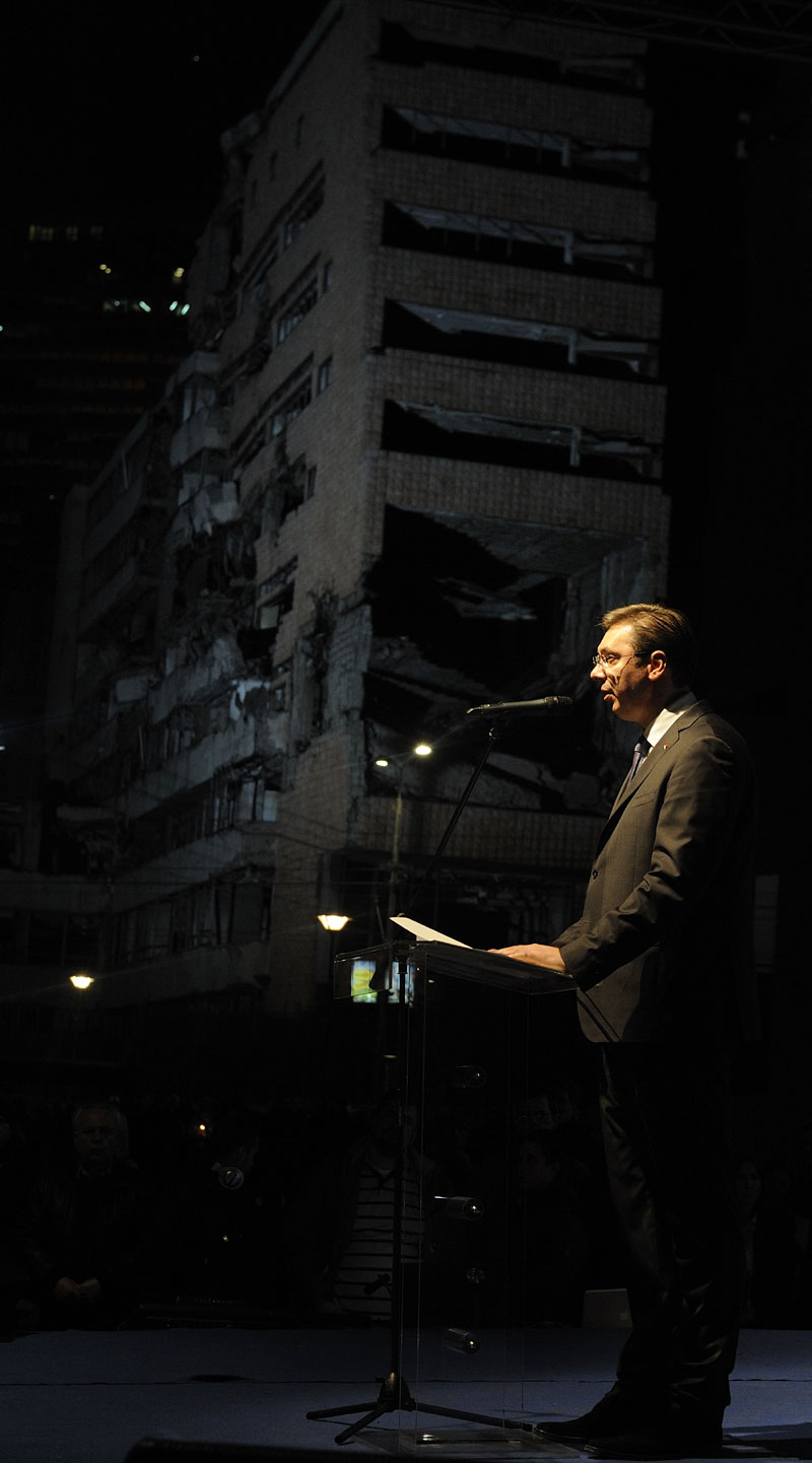 Premijer Srbije Aleksandar Vučić zahvalio je Beograđanima što su se u velikom broju okupili ispred zgrade bivšeg generalštaba, poručujući da Srbija neće zaboraviti 24. mart 1999. godine. On je istakao da je Srbija naucila lekciju, izvukla pouke i da će nastaviti da se bori za normalan i dostojanstven život građana.