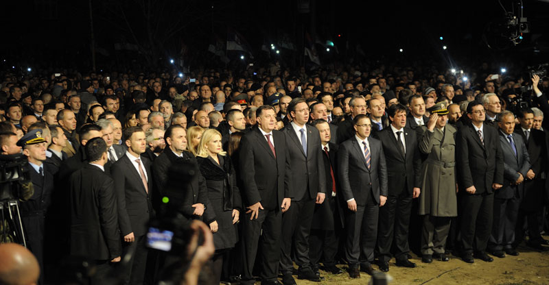 Komemorativna ceremonija završena je pesmom "Ovo je Srbija", a osim premijera Vučića, prisusustvovali su joj i predsednik Republike Srpske Milorad Dodik, predstavnici Vojske Srbije i Crkve, predstavnici parlamenta, diplomatskog kora i udruženja gradana.