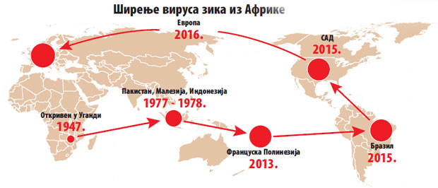 Nova zaraza, u stvari, nije nova. Virus je otkriven 1947. godine na majmunima, u šumi Zika u Ugandi, po kojoj je i dobio ime. Decenijama se pojavljivao sporadično da bi, krajem prve dekade ovog veka buknuo prvi put. Najčešće napada "rame uz rame" s još dva virusa - denga i čukukunga, a prenose ih takozvani tigrasti komarci.