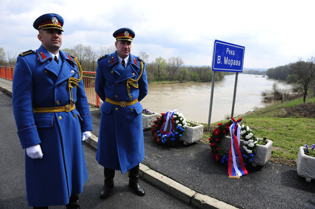 Sa sredine mosta, u Moravu su bačeni venci i bele ruže