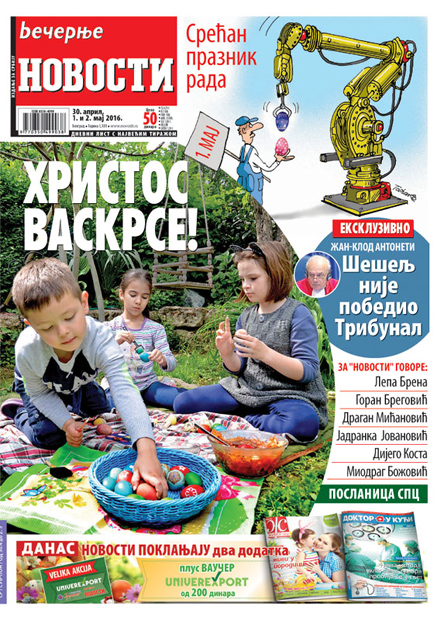 Za uskršnji trobroj „Večernjih novosti” govore: Žan-Klod Antoneti, Jadranka Jovanović, Dragan Mićanović, Goran Bregović, Dijego Kosta, Lepa Brena i mnogi drugi