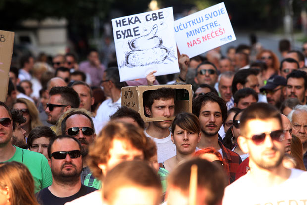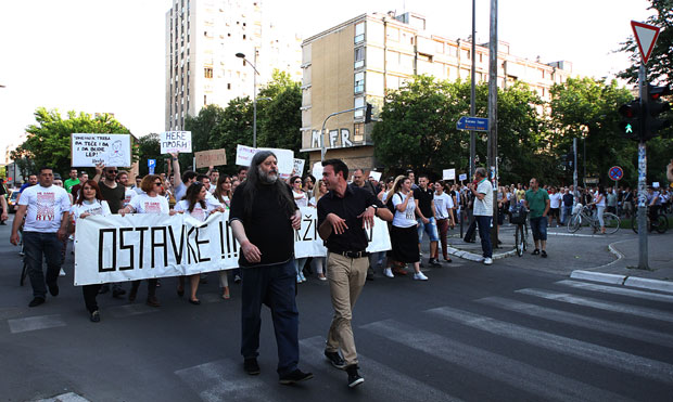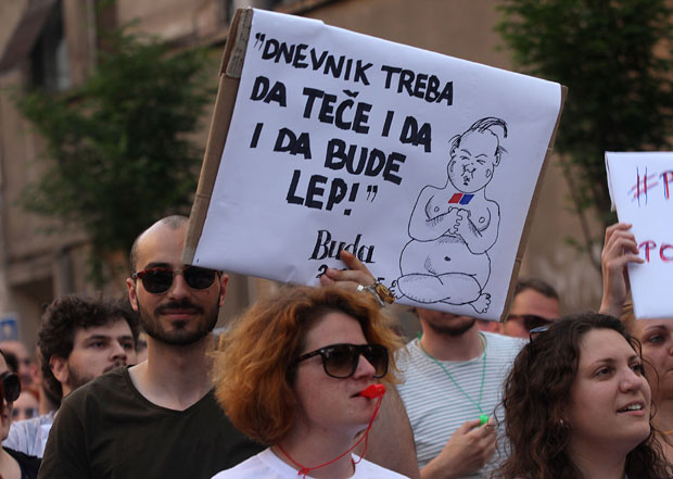 Nosili su transparente "Neće proći", "Ućutkuj svoje ministre a ne nas", "Sloboda bez cenzure", "Podrži RTV", "Dajte odmah Baletićku".