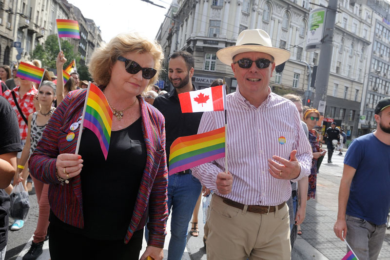 "Jasno je da organizatori Parade efikasno sarađuju sa policijom i sa nadležnim organima koji očito podržavaju Paradu, i to je takođe pozitivna poruka svima o poštovanju ljudskih prava svih građana Srbije", rekao je Davnport novinarima na tokom šetnje na Paradi ponosa.