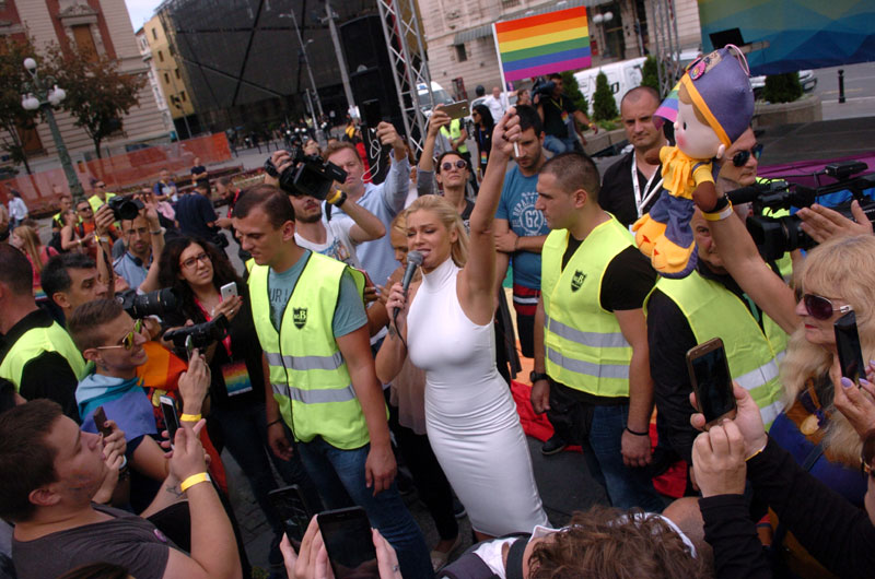 je čestitala svim pripadnicima LGBT populacije koji su, kako je rekla, iskreno i iz čistog srca odlučili da žive zajedno i zahvalila svima koji su su ih podržali. Usledila je šetnja, minut ćitanja na Terazijama u znak podrške LGBT aktivistima i Turskoj. Na Trgu Republike nastupile su Marina Perazić, Bojana Stamenov i Nataša Bekvalac, posle čega je Prajd završen.