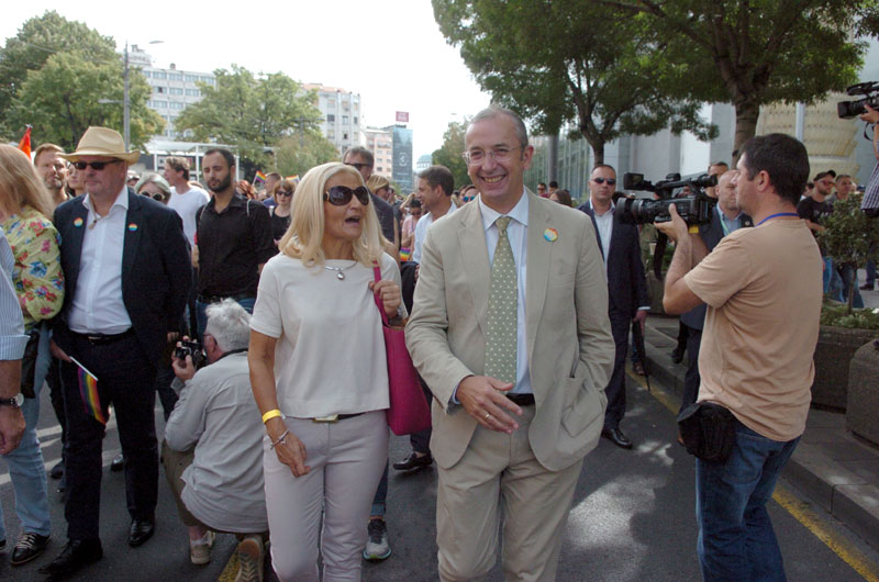 Sa pola sata zakašnjenja, sa Trga Slavija počela je Parada ponosa. Među učesnicima su lider DS Bojan Pajtić, poslanica te stranke Gordana Čomić, poslanica Evropskog parlamenta Tanja Fajon, Kori Udovički. Tu je i ambasador EU u Srbiji Majkl Devenport.