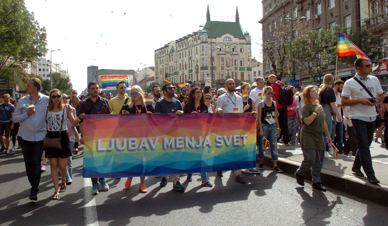 Učesnici beogradske Parade ponosa završili su danas šetnju od Slavije do Trga Republike, a kolona od više stotina učesnika prošla je tu trasu bez incidenata. Pojedini građani pozdravljali su sa terasa i mahali učesnicima Parade, a bilo je i onih koji su negodovali, uz istaknutu srpsku zastavu i transparent na kome je na engleskom jeziku bilo ispisano "Sodomija da bude krivično delo", sa slikom osobe obučene u dugine boje iza rešetaka.
