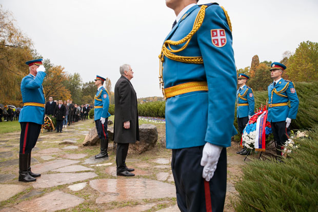 Iz kragujevačkih Šumarica, jednog od najvećih simbola srpskog stradanja u Drugom svetskom ratu, ovo je u petak poručio predsednik Srbije Tomislav Nikolić. Na mestu gde su pre 75 godina nemački okupatori streljali gotovo 3.000 građana Kragujevca, vence su prvi položili đaci Prve gimnazije, a za njima i šef države, više stranih i domaćih delegacije, kao i potomci stradalih.