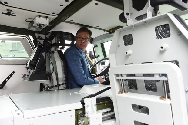 Ocenjujući da uz "miloša" i "lazara" za policiju i vojsku, kao i haubicama NORA za VS, naša vojska i policija postaju neuporedivo bolje i modernije opremljene, Vučić je poručio da je zadovoljan napretkom vojne i namenske industrije.