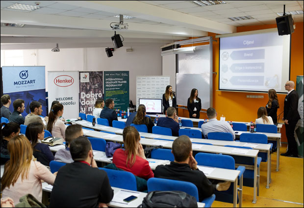 Studenti I, II ili III godine su učestvovali u rešavanju male studije slučaja u okviru Case Room prezentacije. Zadatak je bio da za samo tri sata predstave rešenje koje je zadala kompanija Mozzart na temu „Uvođenje novog proizvoda”.