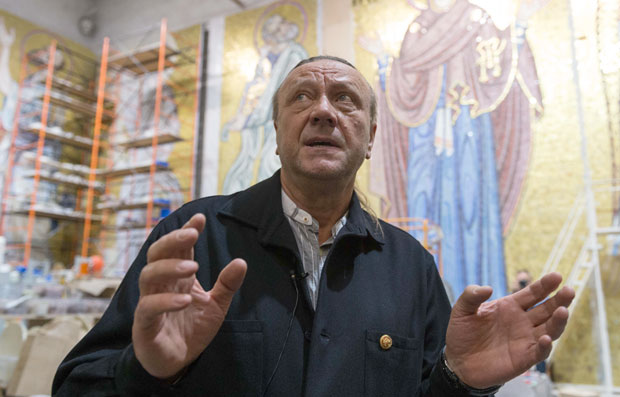 Akademik Nikolaj Muhin, rukovodilac umetničkog tima za dekoraciju enterijera vračarske svetinje, otkriva detalje ovog jedinstvenog poduhvata: Nesvakidašnje umetničko delo teško čak 40 tona. Centralni deo kompozicije, lik Hrista Spasitelja, spreman za transport
