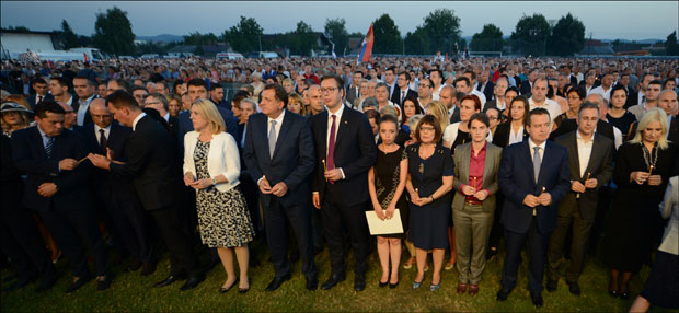 - Izmeriti tragediju srpskog naroda zapadno od Drine, a posebno Srba Krajišnika u poslednjih 75 godina, gotovo je nemoguće. Zločin, težak i grozan, koji se dogodio pre tačno 22 godine meren je različitim merama. Neki su lili suze radosnice i pevali pobedničke pesme, kopirajući ih još iz perioda nacističkih uspeha s početka Drugog svetskog rata, dok su se drugi, a to smo mi, Srbi, našli u čudu političkih poraza, ličnog i političkog sebičluka, u kom nismo smeli ni da govorimo o patnji našeg naroda, njegovom strašnom stradanju, jer bi nam neko spolja to zamerio - rekao je Vučić i dodao: