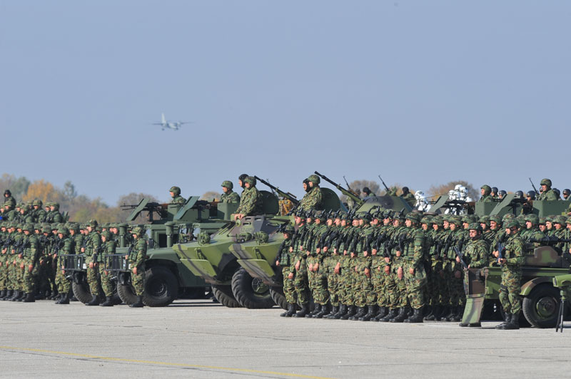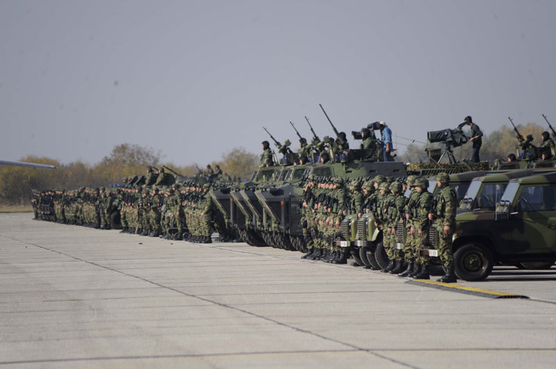 Posle pešadisjkih ešalona nastupili su motorizovani ešaloni snaga za reagovanje Vojske Srbije.
